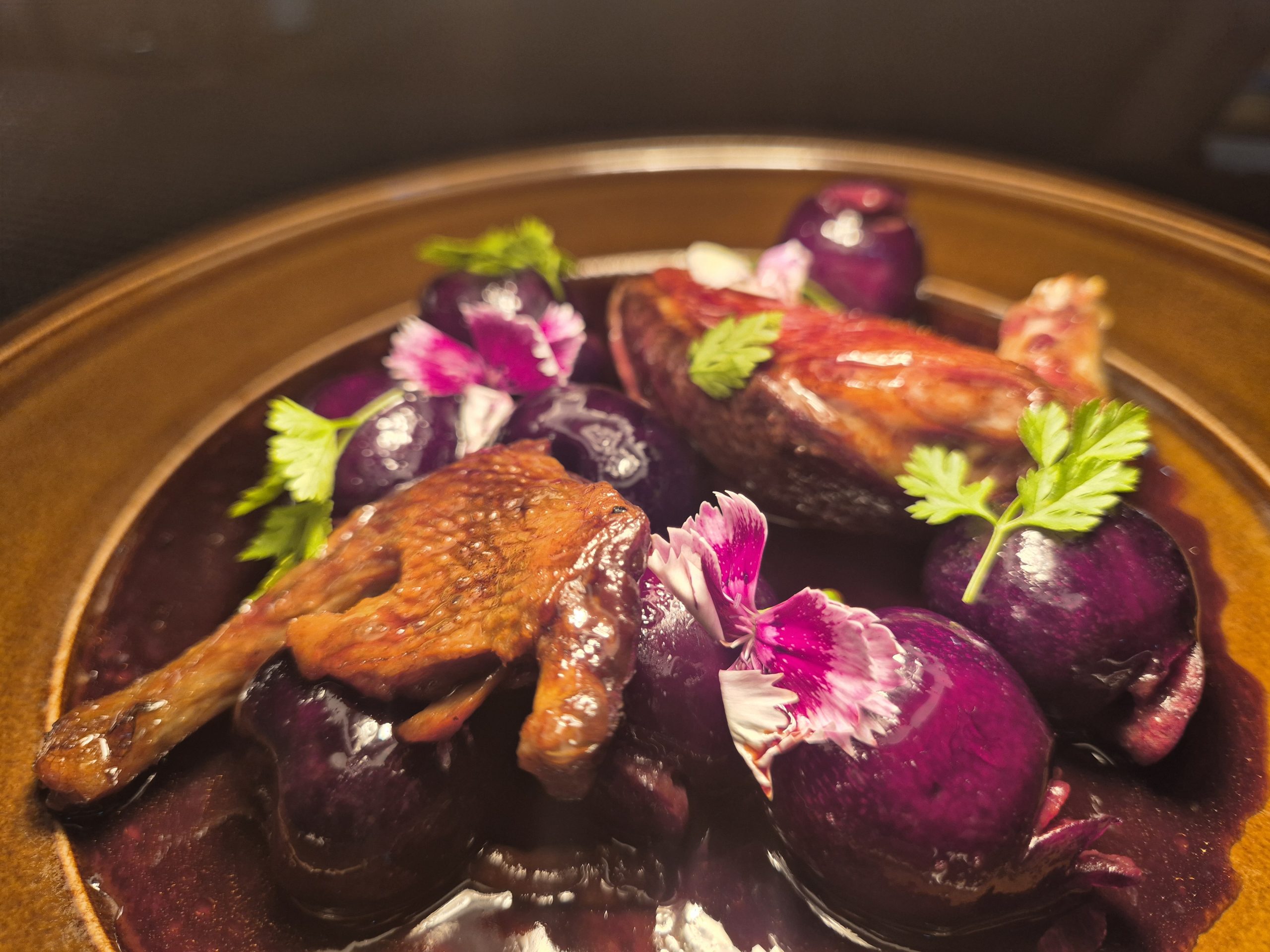 Ici, la cuisine est une histoire de cœur. Le chef de La Maison des Mets sublime chaque assiette avec une vraie passion du produit. À travers ses recettes, il partage son amour pour les produits locaux, frais et de saison, travaillés avec une précision délicate.